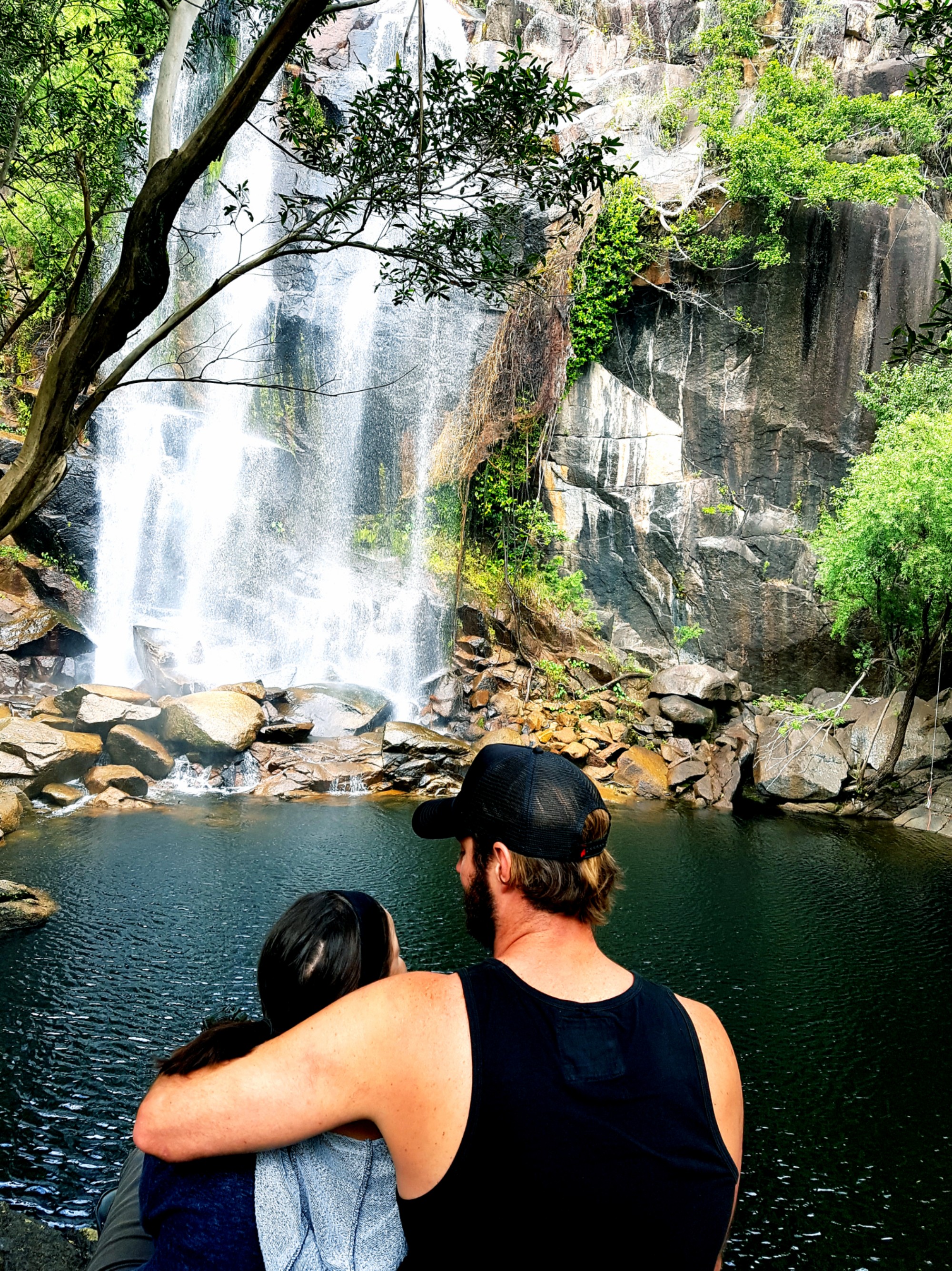 From the Lions Den we head off behind our new friends Joel, Liz, Nuala and Elgan. They all work in Cape Tribulation and have taken a 2 day getaway. We followed them to a hidden waterfall off the Mulligan Highway, which was testing at times of my motorbike skills. Pot holes everywhere, sand and lots of uneven, split roads. The area was surrounded by large boulder rocks and trees growing in the sides and in between the rocks, anyway they could. It was quite incredible to see. As the waterfall fell into the water hole it looked deep and dark but was small enough for us to not worry about any crocodiles, we hope. We took some time to appreciate our surroundings and left, not before searching for Nuala who had wondered off down the stream and got lost.